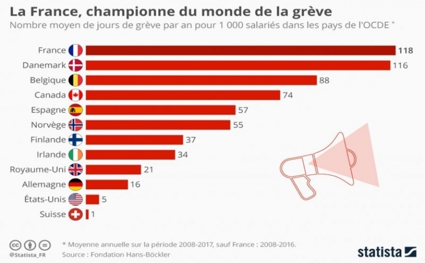 Au nom du « dialogue social », les gouvernements français, de gauche et de droite, démocratiquement élus, n’ont cessé de répéter qu’ils allaient laisser les partenaires sociaux s’entendre pour trouver des solutions à telle ou telle crise ou pour faire avancer une réforme. Nouvel épisode aujourd’hui : le Premier ministre invite ces partenaires à poursuivre les négociations et trouver des solutions. Or, ce fameux « dialogue social » n’est qu’une vaste mascarade. C’est plutôt un monologue, voire un soliloque, social. Les syndicats, dans leur grande majorité, resservent les mêmes discours sur les prétendus « acquis sociaux » et refusent toute réforme, aussi timide soit-elle. Hors de question de céder. Une nouvelle fois, ils recourent aux grèves et bloquent un pays entier. Cette mascarade est bien visible dans les chiffres qui nous offrent un nouveau record du monde, celui des jours de grève : 118 par an pour 1 000 salariés !