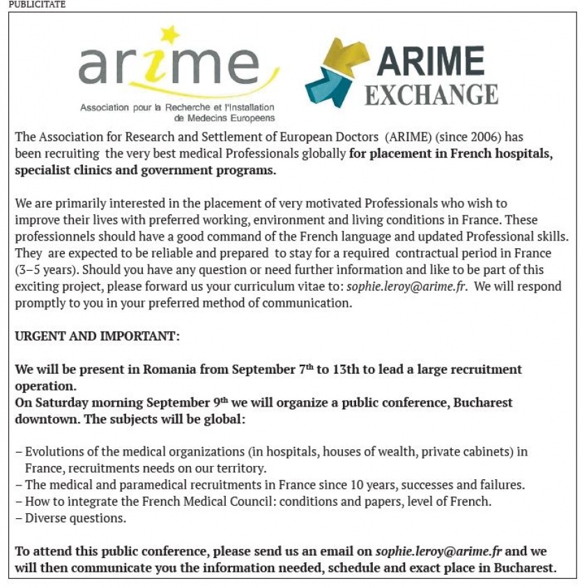 - Ten years have passed since Romania entered Europe and ten years also have passed since ARIME began integrating Romanian doctors and paramedical staff.
